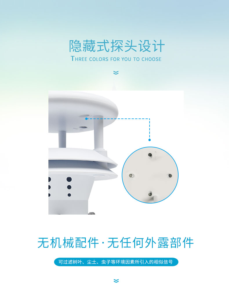 4.免維護,雨滴接觸面為弧形設(shè)計結(jié)構(gòu),不存儲雨水